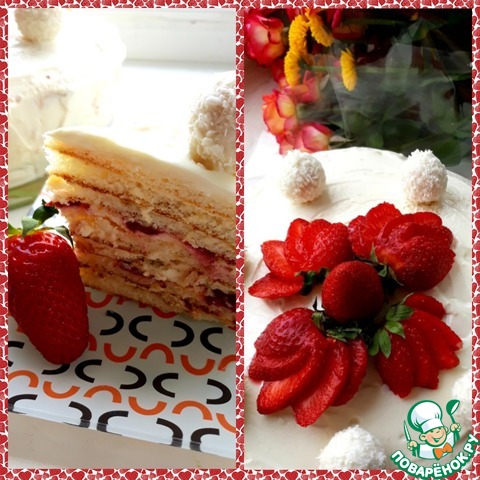 [+5]Йогурт взяла 5% со вкусом клубника-кокос, вкус клубники добавил ягодную ноту всему торту.