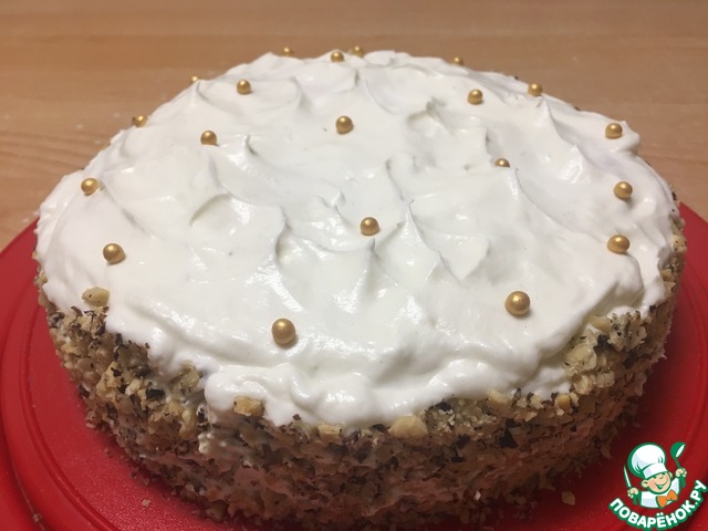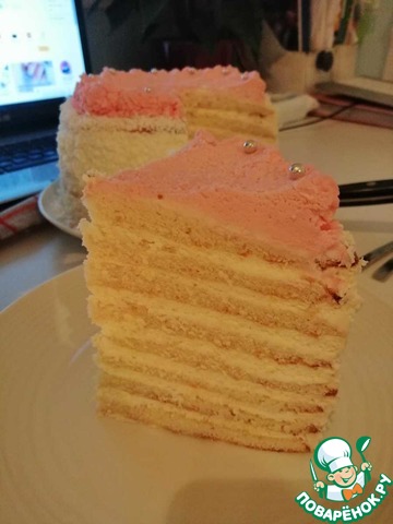 Коржей у меня получилось 7 шт диаметром 20 см, крема хватило весь торт обмазать(клала 2 ст.л. на каждый слой). Коржи ничем не пропитывала, сами по себе пропитываются кремом и получаются сочными! Очень вкусно, в меру сладко, я не люблю сладкие торты, муж любит, а в итоге торт и мне и ему понравился