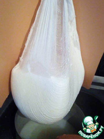Периодически потряхивать, для лучшего стекания сыворотки. -