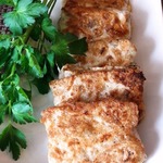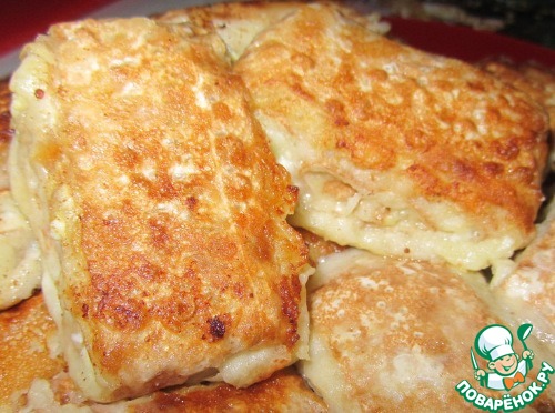 Обмакиваем во взбитые слегка с солью яйца и обжариваем до золотистой корочки!