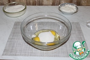 Разбиваем яйца в чашку и добавляем сахар. Хорошо взбиваем.