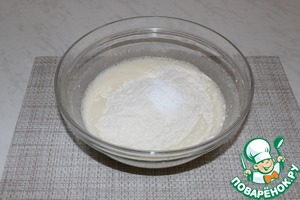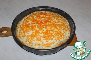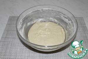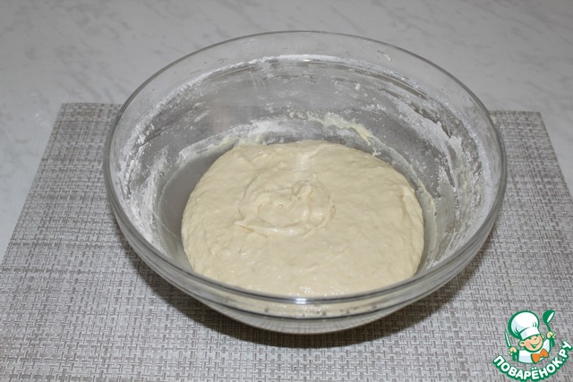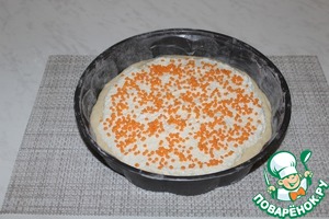 Форму смазываем сливочным маслом и присыпаем мукой. Выливаем тесто.