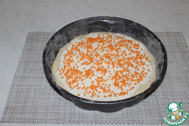 Выкладываем начинку на тесто и разравниваем недоходя до края.