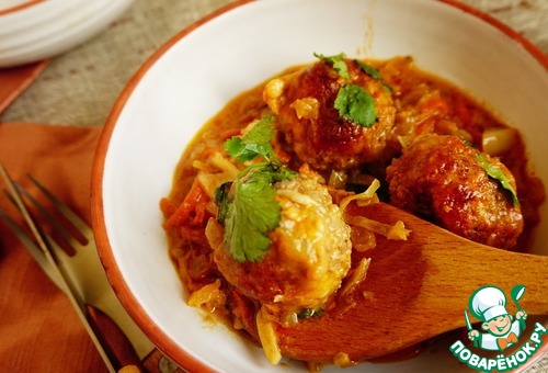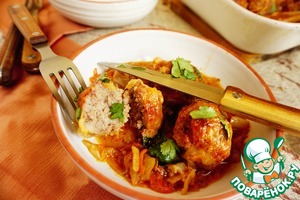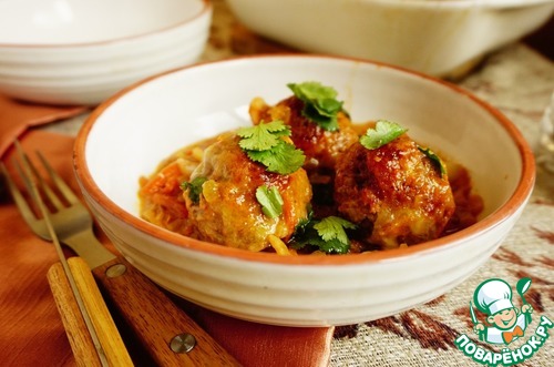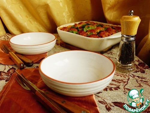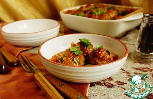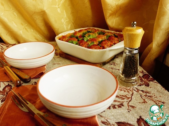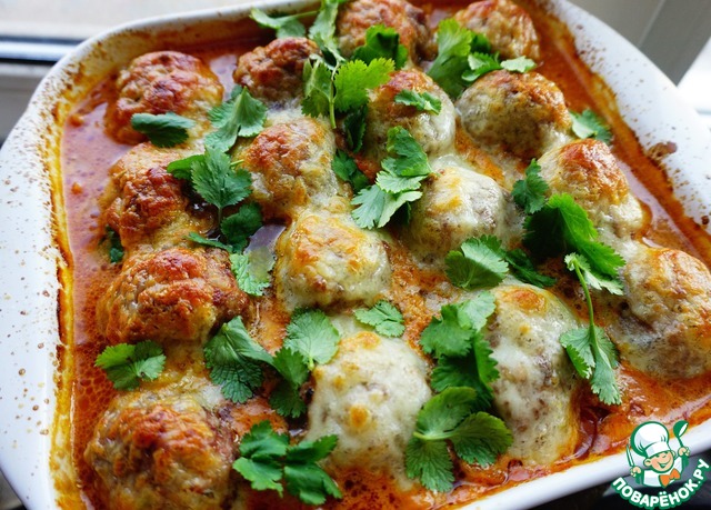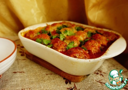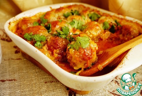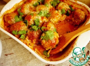 Рецепт «Тефтели на подушке под соусом и моцареллой»: