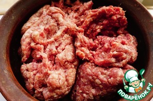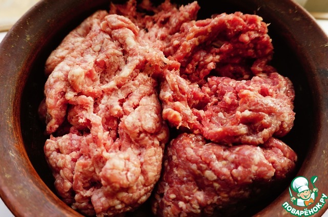 Готовим фарш. Перекручиваем через мясорубку свинину и говядину.