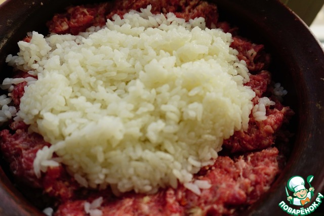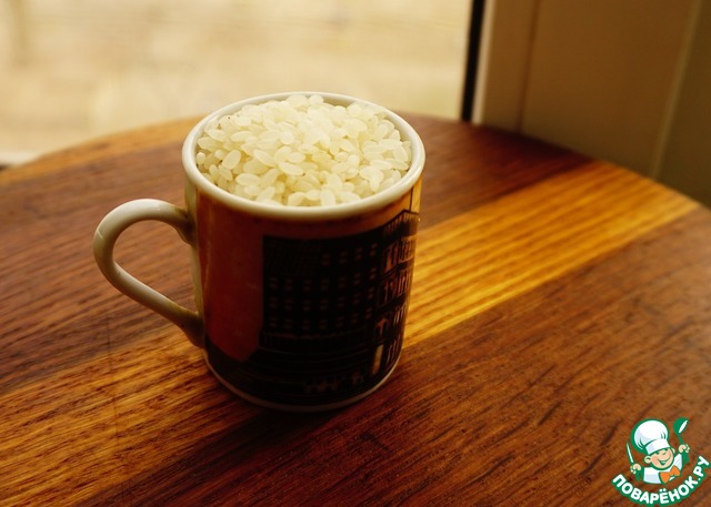 Промываем водой рис, заливаем горячей водой и подсаливаем. Ставим на огонь, доводим до кипения. Варим 5 минут.