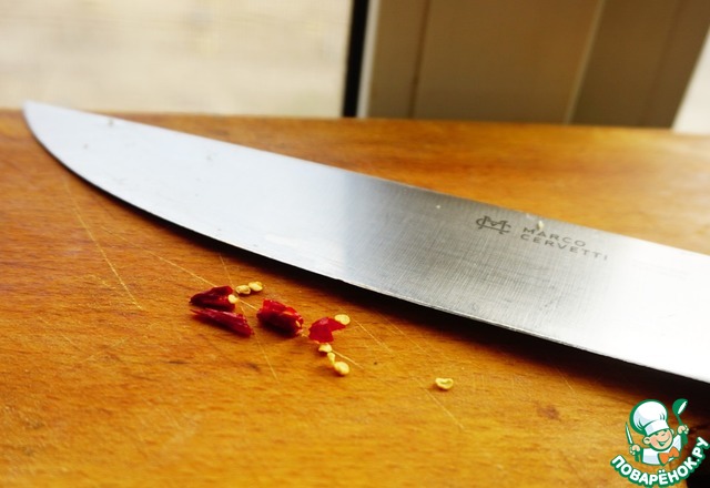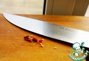 Семена я не вычищаю, т. к. люблю острое. Вы делайте на свой вкус. Перец мелко нарезаем.