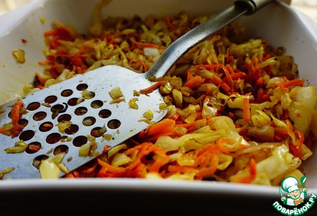 В этом масле обжариваем капусту. Обжарке даст капусте более яркий вкус.
