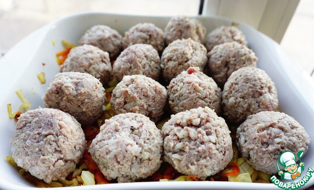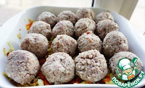 Овощи, как гарнир, вниз, а сверху тефтели.