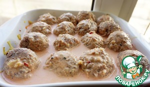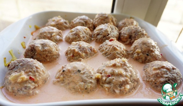 Тефтели заливаем соусом. Отправляем в разогретую до 180 градусов духовку. Сначала на 20 минут.
