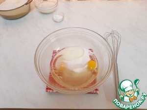 К яйцам добавляем сахар, ванильный сахар и соль.