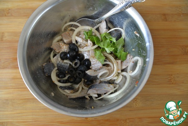 Рецепт «Закуска из маринованной сельди с маслинами»: