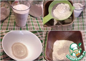 Муку обязательно просеять. Сверху муки у меня дрожжи.