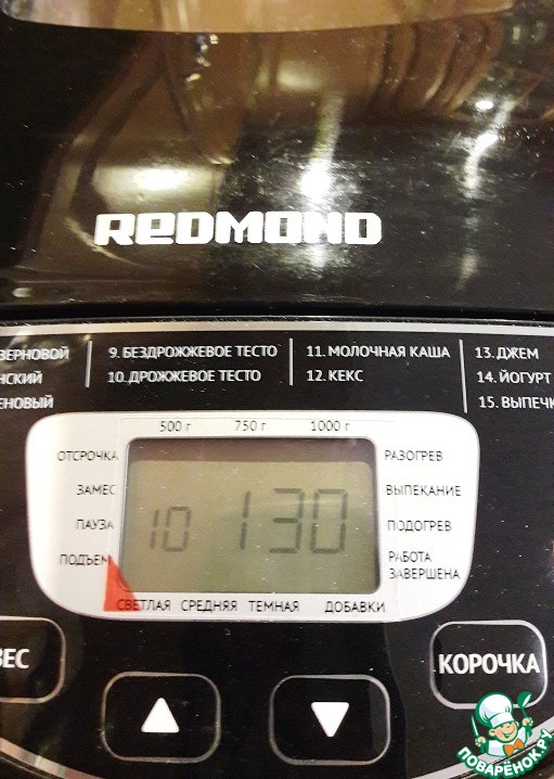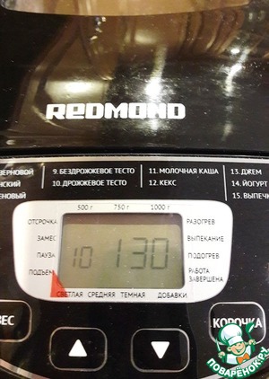 Размещаем ведерко в ХП. Устанавливаем программу "Тесто", у меня она длится 1,5 часа. И стартуем!!! Не забываем корректировать колобок! Мне пришлось добавить ещё 2 ст. л. воды.