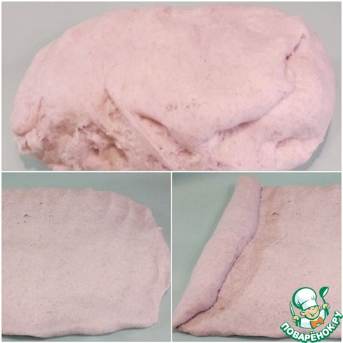 Через 1,5 часа достаем наше тесто. Раскатываем в прямоугольник. И сворачиваем в рулет.