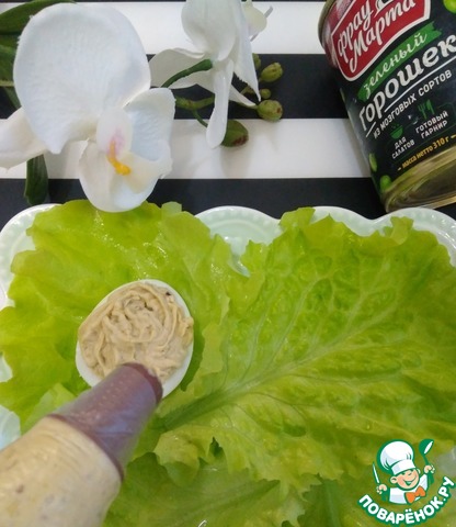 Рецепт «Фаршированные яйца с зеленым горошком»: