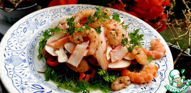 Очень вкусный салат из морепродуктов. Однажды услышала об этом салате у Анастасии Волочковой (в какой-то передаче). Отсюда и название.
