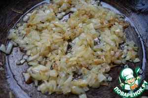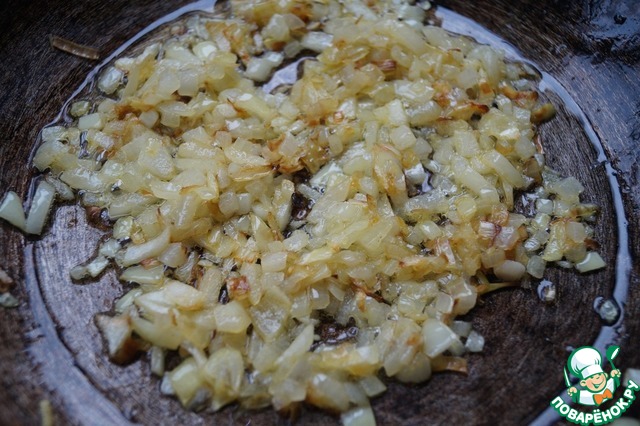 Лук очистить, мелко нарезать и спасеровать на оливковом масле до мягкости.