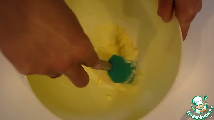 Добавляем яйцо, перемешиваем и вводим молоко.