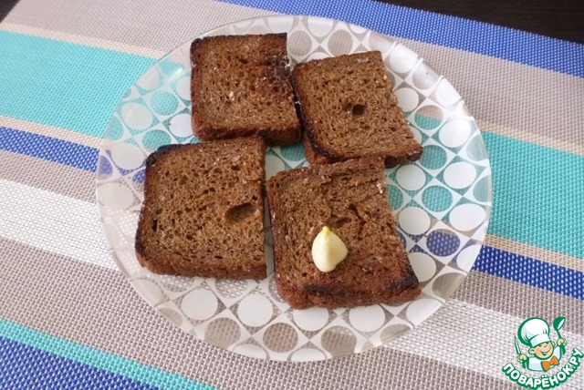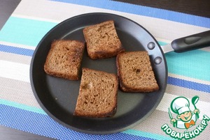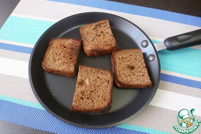 Ломтики "Бородинсого" или другого черного хлеба подсушить на сухой сковороде.