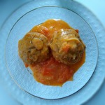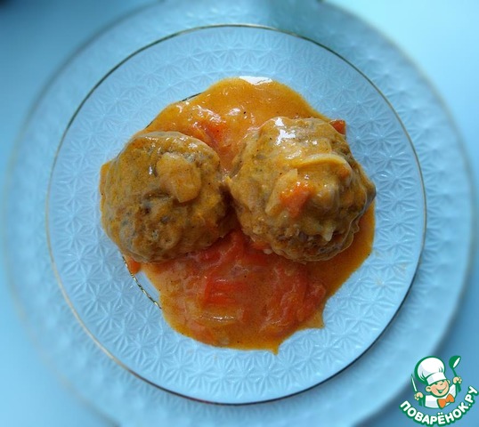 Всё заливаем подливой и ставим на медленный огонь. Когда закипит подлива положите пару кубиков сливочного масла. Тушите минут 30.