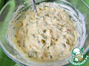 • Добавить горошек, сушёные лук и перец, растительное масло.