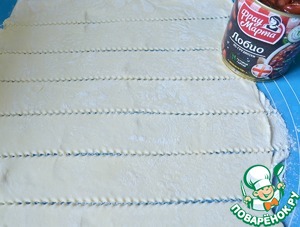 Тесто раскатать в прямоугольник, 25 * 20 см.