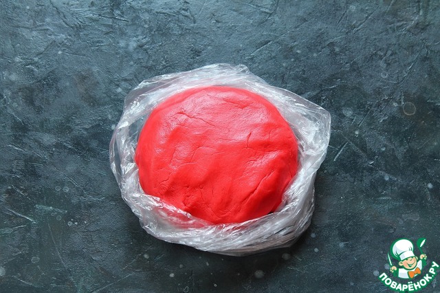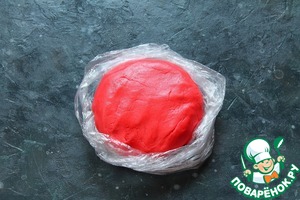 Если Вы против использования пищевых красителей, можно просто пропустить этот шаг или заменить 30-40 гр муки на какао-порошок. -