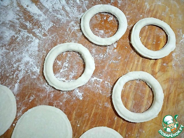 Из раскатанного теста выдавливаем кружки нужного вам размера.