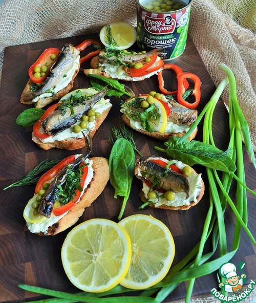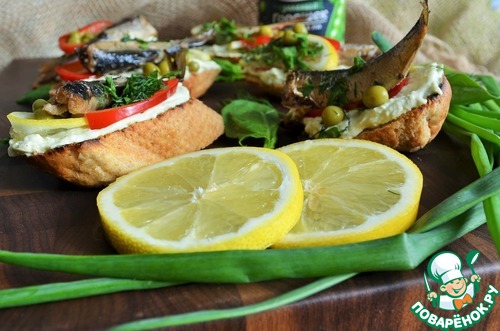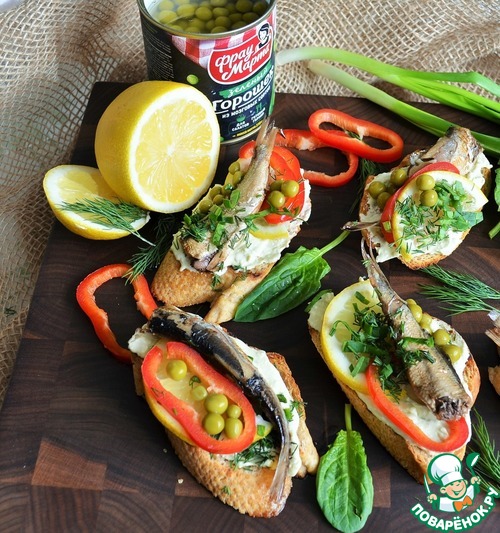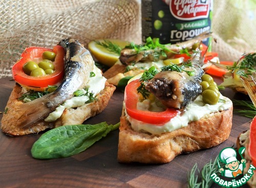 Рецепт «Бутерброды со шпротами и сыром фетаки»: