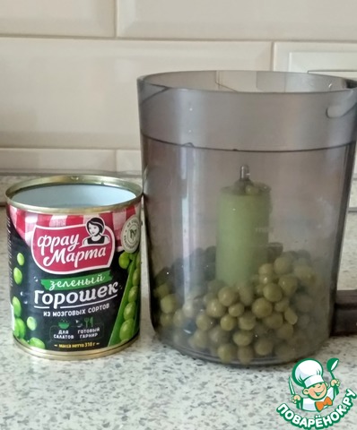 В блендер поместить консервированный горошек.