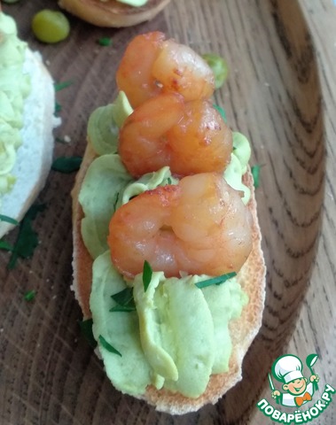 Рецепт «Брускетта с зеленым горошком и креветками»: