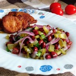 Не плохо! Думаю, что фасольку нужно слегка подавить (частично, хотя бы) и дбавить (по вкусу) аджики -немного. И, будет совсем хорошо.....