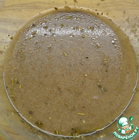 Лен, воду, масло, специи и соль смешать.