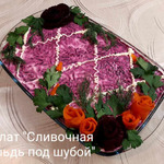 У меня неделя не может пройти без "шубного"салата, так как муж очень его любит. Конечно, мне захотелось нового вкуса. Получилось очень нежно. Такой салатик достоин праздничного новогоднего стола! Попробуйте сливочную "шубку". Уверена, что вам понравится. Очень нежно!