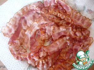 Поджаренный бекон выложите на бумажное полотенце, оставив жир в сковороде.