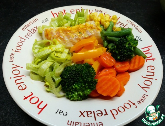 Филе трески приготовленное на овощной подушке на пару - быстрое, диетическое блюдо. Пропаривая рыбу таким способом мы получаем нежную, сочную рыбу и вкусный соус с овощами. Способ готовки подсмотрен в телепередаче. Все овощи взяты на мой вкус. Вкусно получается с любой рыбой. Только кусочки должны быть тонкие, чтобы рыба быстро приготовилась, а овощи не разварились. Для любителей рыбки, и не только!