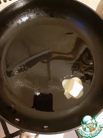Налить в сковороду растительное масло и добавить кусочек сливочного.