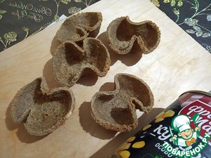 Укладываем хлебные кружочки в формочки для кексов и аккуратно придаём форму.