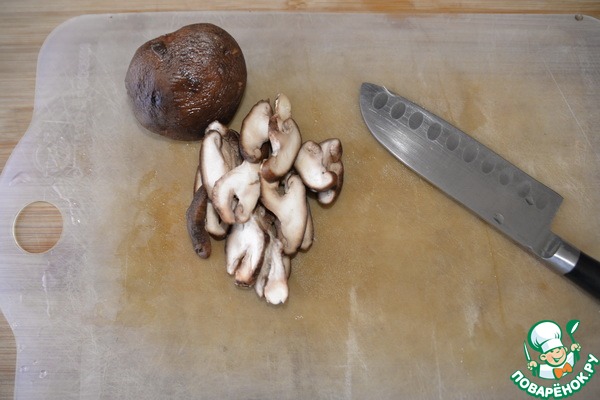 Грибы тщательно моем, обсушиваем, режем тонкими пластинками. -