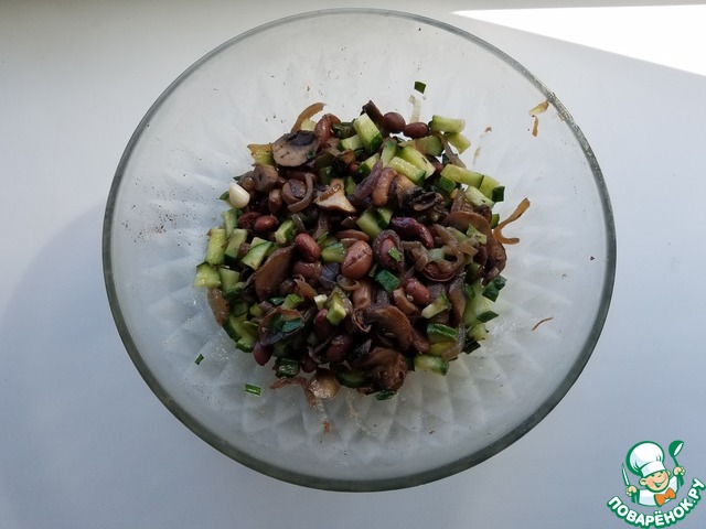 Рецепт «Теплый салат из фасоли с грибами»: