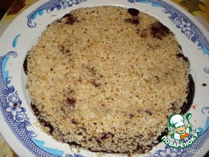 Смазать поочередно все коржи. Верх пирога поверх варенья густо посыпать крошками. Раньше, чтобы не пачкать мясорубку, я толкла кусочки толкушкой. Как же это было неудобно. А теперь, засыпала в блендер, нажала на кнопку – бац, через 10 секунд отличные крошки. У меня крошек получилось много, использую их для выпечки печенья с семечками (от Ladushka).