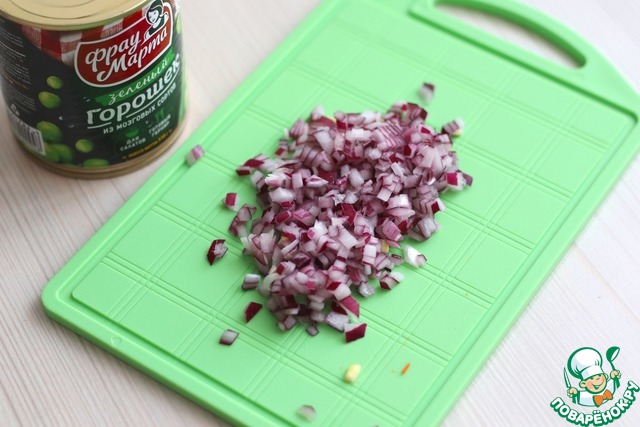 Красный лук (1 шт.) нашинковать мелкими кубиками.