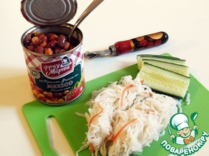 - Фасоль консервированная (красная фасоль "Mexico", овощная смесь от ТМ Фрау Марта) — 1 бан.