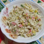 В этом салате очень гармонично переплетаются все входящие в него ингредиенты, это и сочные зерна кукурузы, и хрустящие грецкие орешки, и нежность крабового мяса! Вкусно, легко, просто, полезно, доступно!