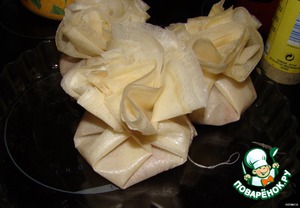 Собираем края теста в кулечек... завязываем ниткой... отправляем в духовку на 30 минут... выпекаем при температуре 200*C...