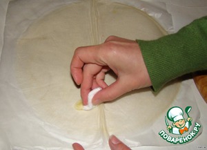 тесто смажем растопленным сливочным маслом с двух сторон...