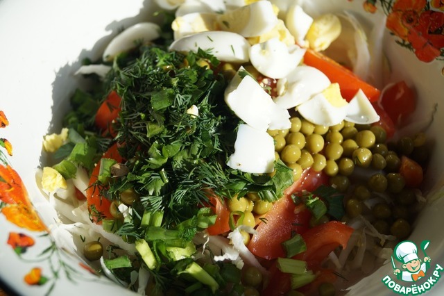 - Горошек зеленый (консервированный, ТМ Фрау Марта) — 3 ст. л.