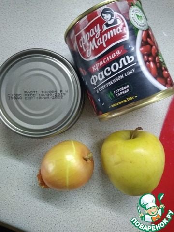 - Фасоль консервированная (В собственном соку. ТМ Фрау Марта) — 1 бан.