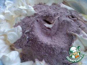 слегка перемешав, добавить муку, заранее смешанную с какао,